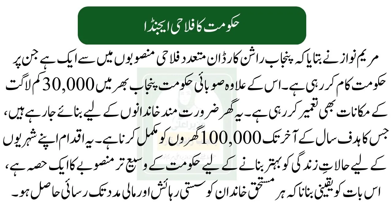 Maryam Nawaz shared that the Punjab Ration Card is just one of the several welfare projects the government is working on. In addition to this, the provincial government is also constructing 30,000 low-cost housing units across Punjab. These homes are being built for families in need, with a goal to complete 100,000 homes by the end of the year. This initiative is a part of the government’s broader plan to improve living conditions for its citizens, ensuring that every deserving family has access to affordable housing and financial support.